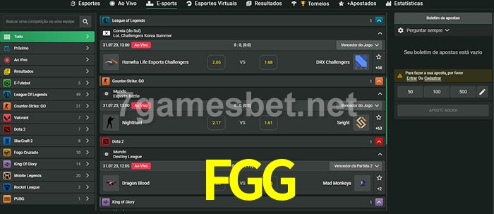 O FGG oferece uma grande seleção de opções de apostas em e-sports com probabilidades competitivas